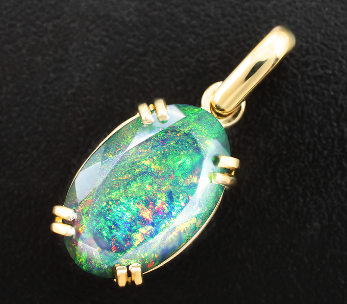 Вашему вниманию предлагается кулон из желтого золота 585 пробы с ограненным черным опалом! Основные цвета опалесценции: красный, желтый и зеленый. Размеры вставок 16 х 10 мм. Размеры кулона с петлей 26 х 11 мм. Вес изделия 3 г. Ниже приводятся ювелирные характеристики вставки.