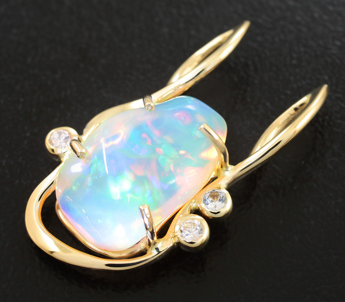 Кулон с кристаллическим эфиопским опалом и бесцветными сапфирами