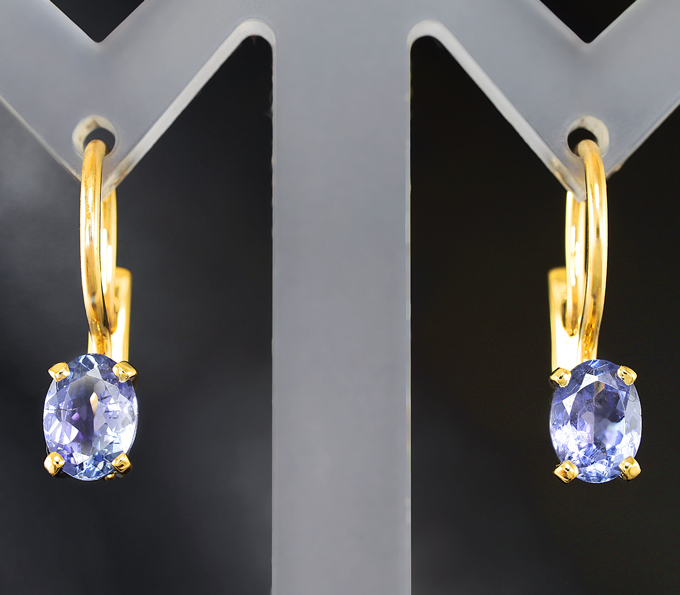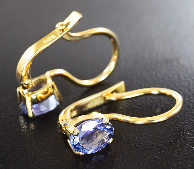 Вашему вниманию предлагаются серьги из желтого золота 585 пробы с танзанитами 1,77 карата! Размеры вставок 7 х 5 мм. Размеры серег с петлей 20 х 5 мм. Вес пары 2,8 г.