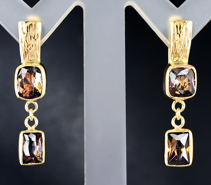 Вашему вниманию предлагаются серьги из желтого золота 585 пробы с аксинитами! Размеры серег с петлей 27 х 5 мм. Вес пары 4 г. Ниже приводятся ювелирные характеристики вставок.