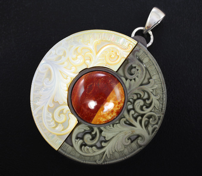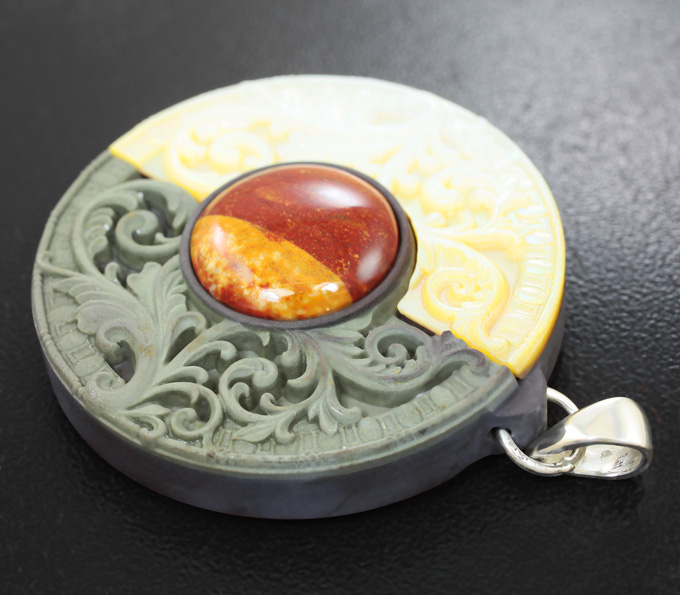 Камея-подвеска «День и Ночь» из яшмы и перламутра