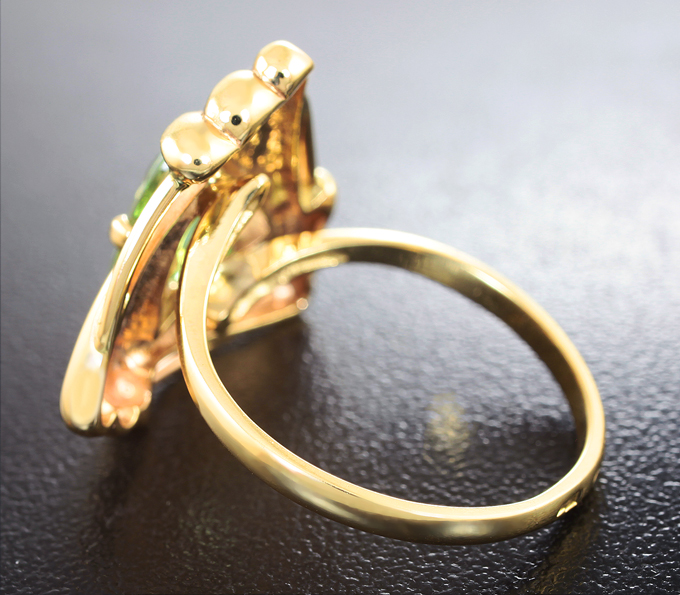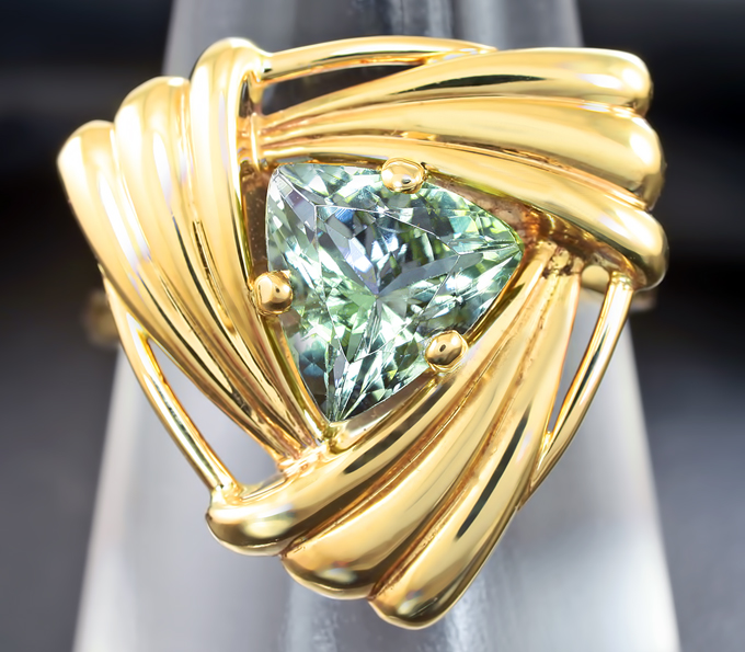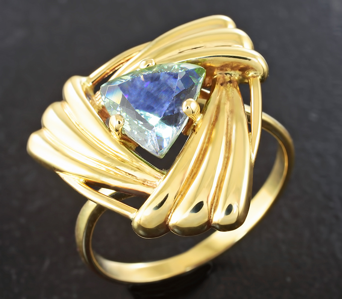 Вашему вниманию предлагается кольцо из желтого золота 585 пробы с цоизитом 2,06 карата! Размеры вставки 8,75 х 8,18 х 5,14 мм. Площадка 20 х 20 мм, высота 6 мм. Вес изделия 5,1 г. Размер 18,75.