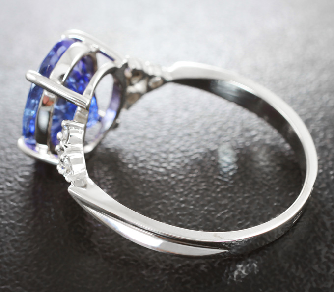 Вашему вниманию предлагается кольцо из белого золота 585 пробы с танзанитом и бриллиантами! Диаметр дополнительной инкрустации 2 мм. Площадка 16 х 11 мм, высота 6 мм. Вес изделия 3 г. Размер 18,5. Ниже приводятся ювелирные характеристики танзанита.