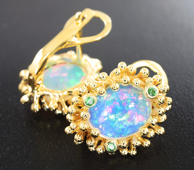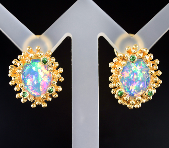 Серьги с кристаллическими эфиопскими опалами и цаворитами
