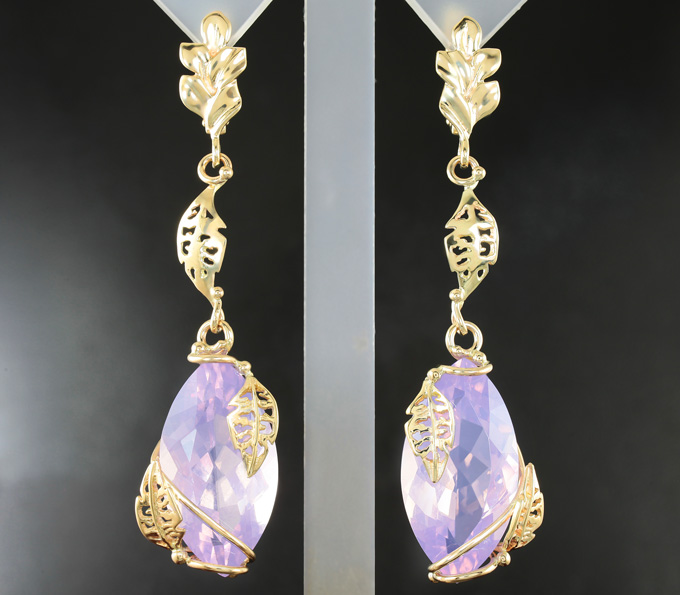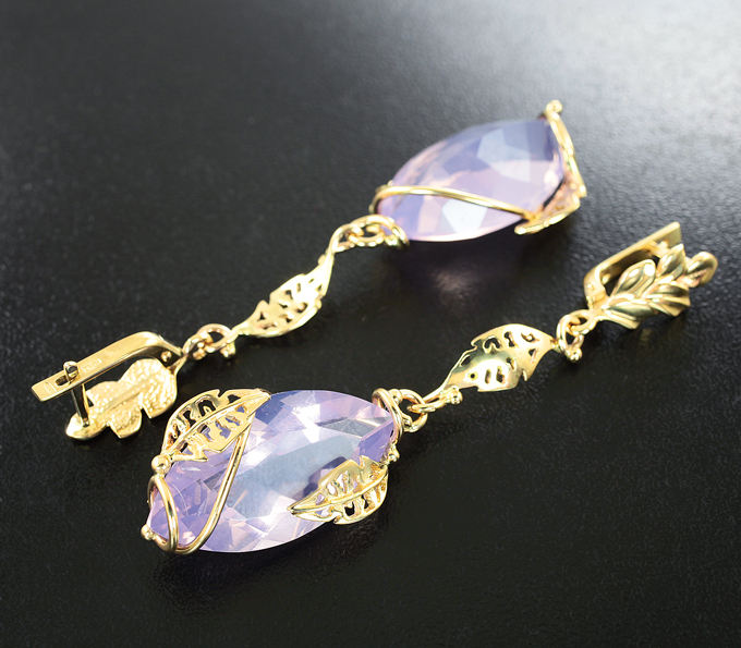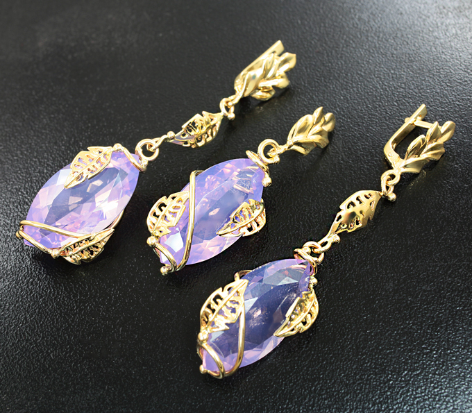 Вашему вниманию предлагается комплект (серьги + кулон) из желтого золота 585 пробы с лавандовыми аметистами! Размеры вставок 25 х 13 мм. Вес комплекта 18,9 г.