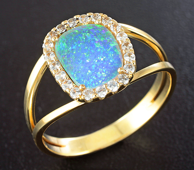 Кольцо c австралийским solid опалом и бесцветными цирконами