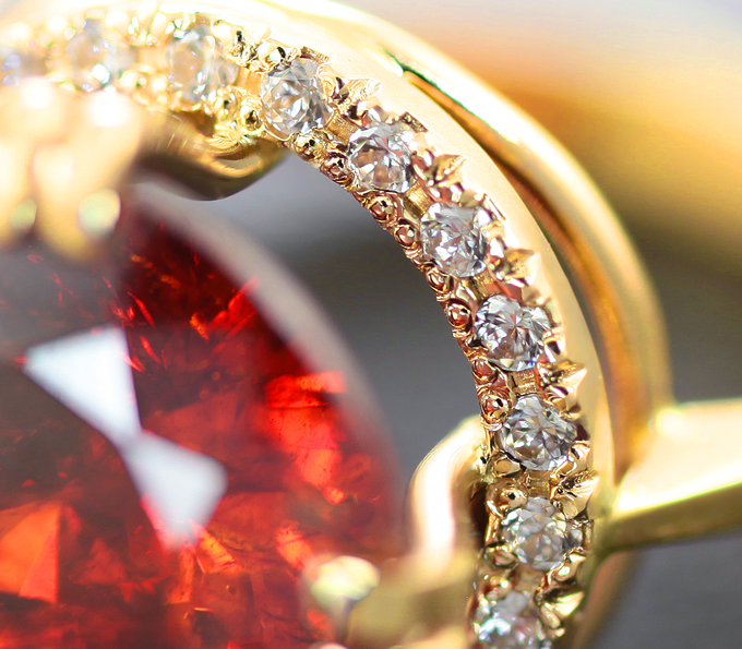 Кольцо с крупным сфалеритом и бесцветными цирконами