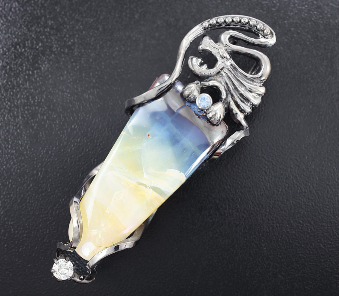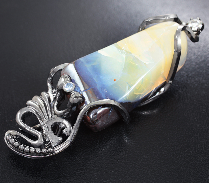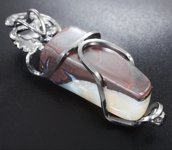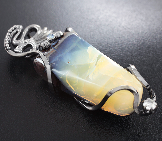Кулон с австралийским болдер опалом, васильковым сапфиром и бесцветным цирконом