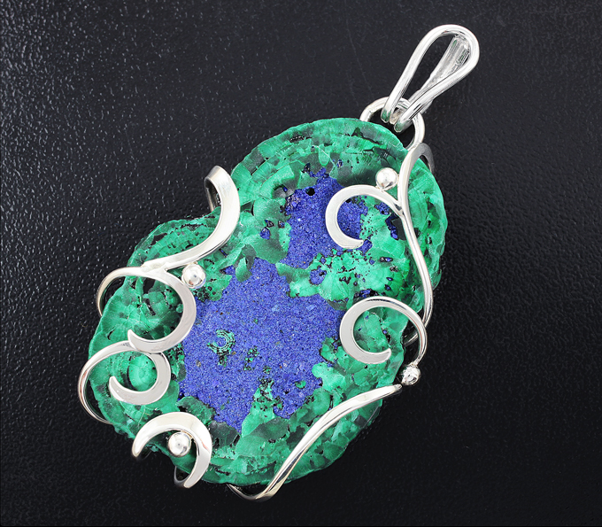 Вашему вниманию предлагается кулон из стерлингового серебра (925 проба) с азуритом в малахите! Размеры кулона с петлей 58 х 33 мм. Вес изделия 16,8 г. Ниже приводятся ювелирные характеристики вставки.