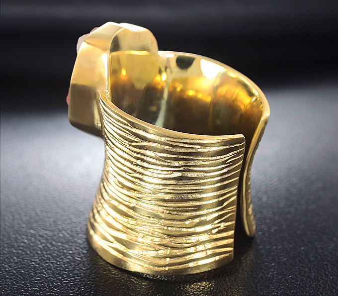 Кольцо c необработанным солнечным камнем