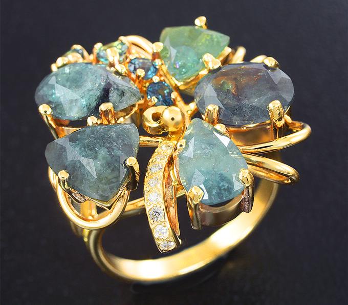 Кольцо c александритами и бриллиантами