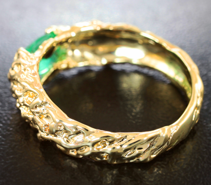 Вашему вниманию предлагается кольцо из желтого золота 585 пробы c уральским изумрудом! Ширина площадки 7 мм, высота 3 мм. Вес изделия 4,3 г. Размер 18. Ниже приводятся ювелирные характеристики вставки.