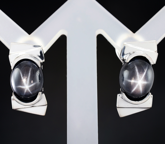 Вашему вниманию предлагаются серьги из стерлингового серебра (925 проба) со звездчатыми сапфирами 12,66 карата! Размеры вставки 12 х 8 мм. Площадка серег 19 х 9 мм. Вес пары 9 г.