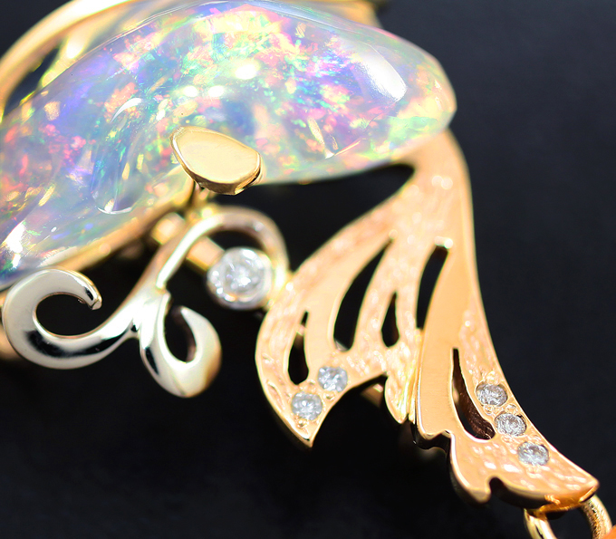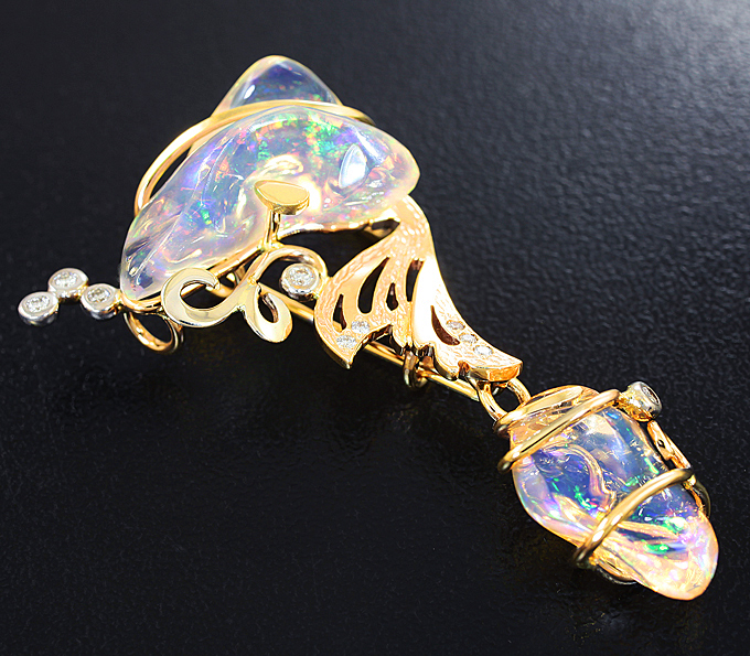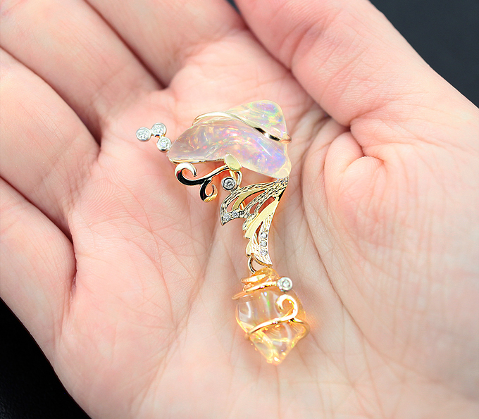 Кулон с кристаллическими эфиопскими опалами и бриллиантами