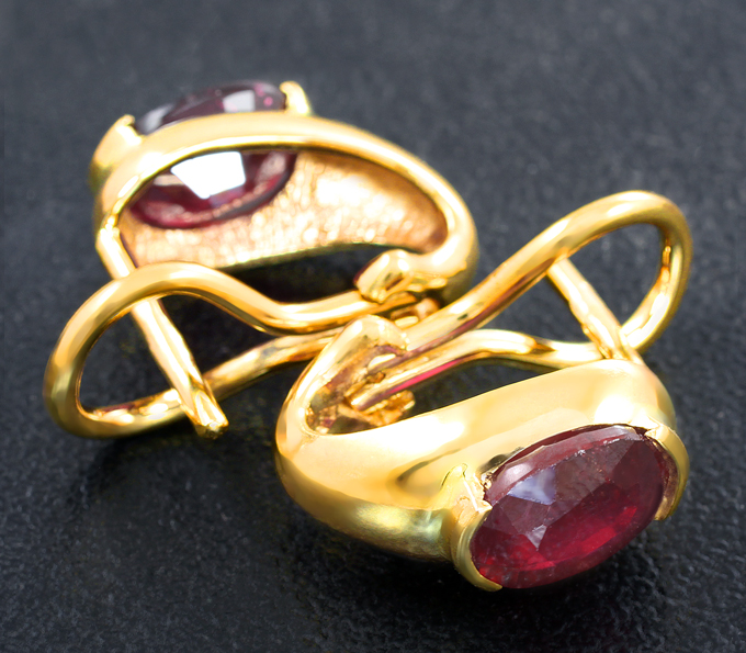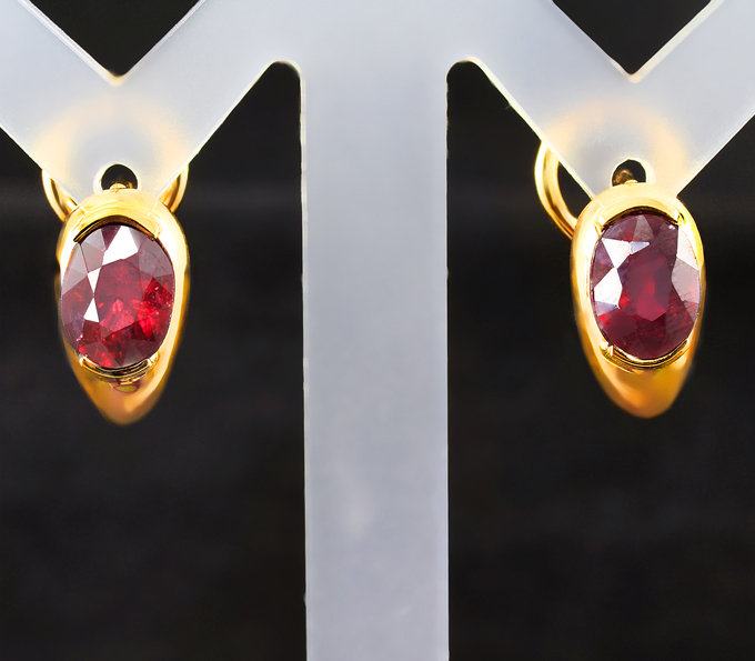Вашему вниманию предлагаются серьги из желтого золота 750 пробы с рубинами! Площадка серег 14 х 7 мм. Вес пары 5,1 г. Ниже приводятся ювелирные характеристики вставок.