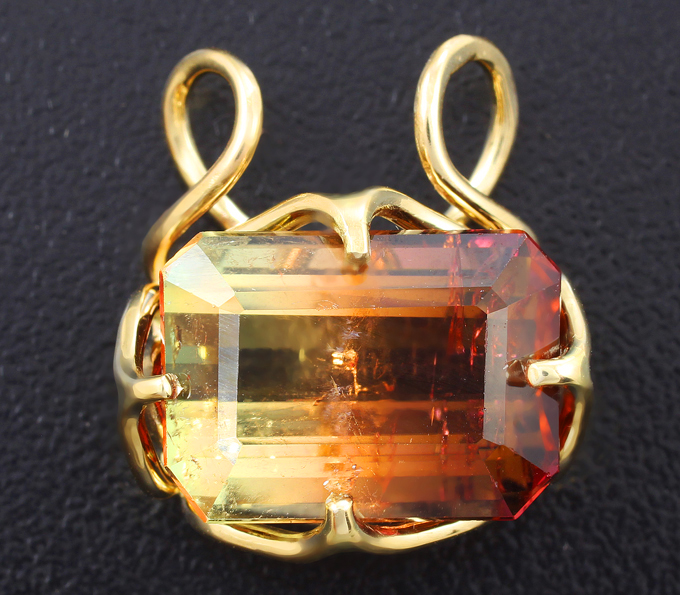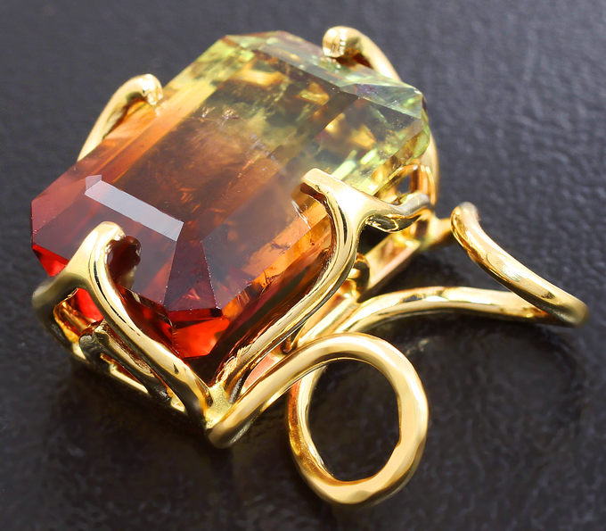 Вашему вниманию предлагается кулон из желтого золота 585 пробы с крупным полихромным турмалином! Размеры вставок 19 х 17 мм. Площадка кулона 19 х 17 мм. Вес изделия 4,6 г. Ниже приводятся ювелирные характеристики вставки.