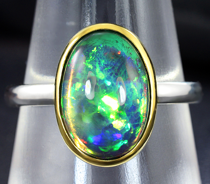 Кольцо c кристаллическим черным опалом