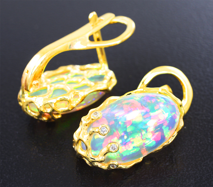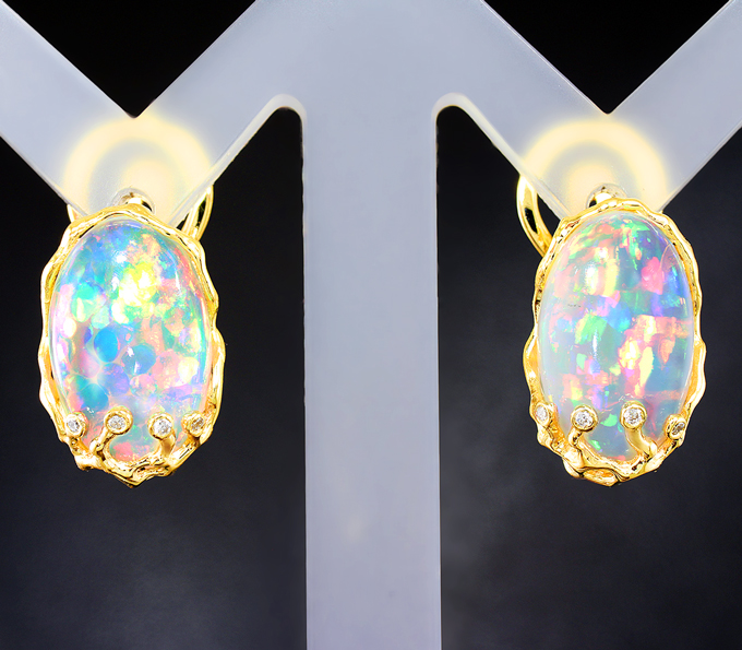 Серьги с кристаллическими эфиопскими опалами и бриллиантами