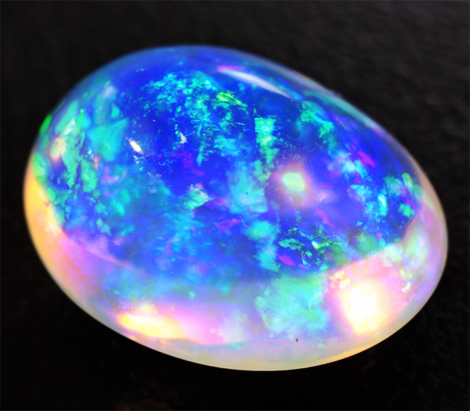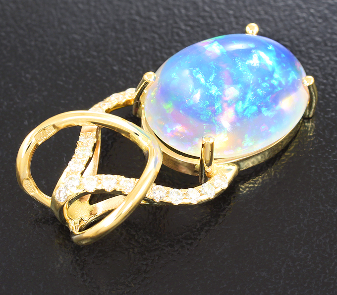 Кулон с кристаллическим эфиопским опалом и муассанитами