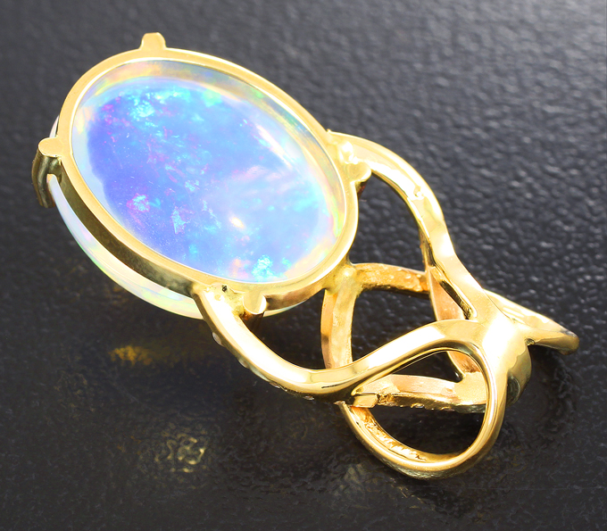 Вашему вниманию предлагается кулон из желтого золота 585 пробы с кристаллическим эфиопским опалом и муассанитами! Основные цвета опалесценции: синий и зеленый. Диаметр дополнительной инкрустации 1 мм. Площадка кулона 26 х 14 мм. Вес изделия 3,4 г. Ниже приводятся ювелирные характеристики опала.