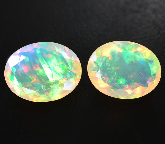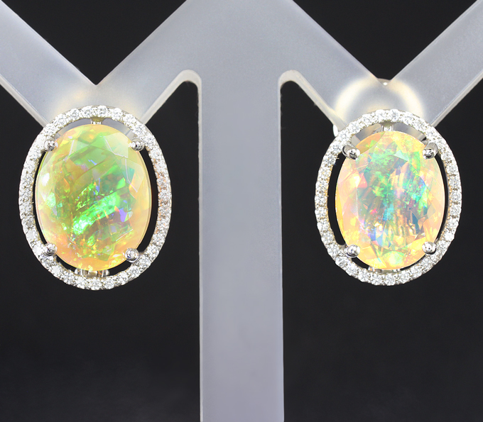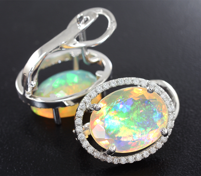 Серьги с ограненными эфиопскими опалами и бесцветными сапфирами