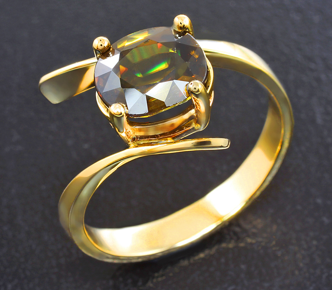 Вашему вниманию предлагается кольцо из желтого золота 585 пробы c медовым сфеном! Ширина площадки 10 мм, высота 6 мм. Вес изделия 3 г. Размер 16,5. Ниже приводятся ювелирные характеристики вставки.