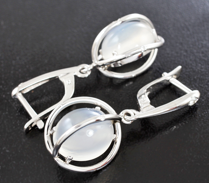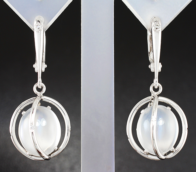 Серьги с лунным камнем с эффектом кошачьего глаза и бриллиантами