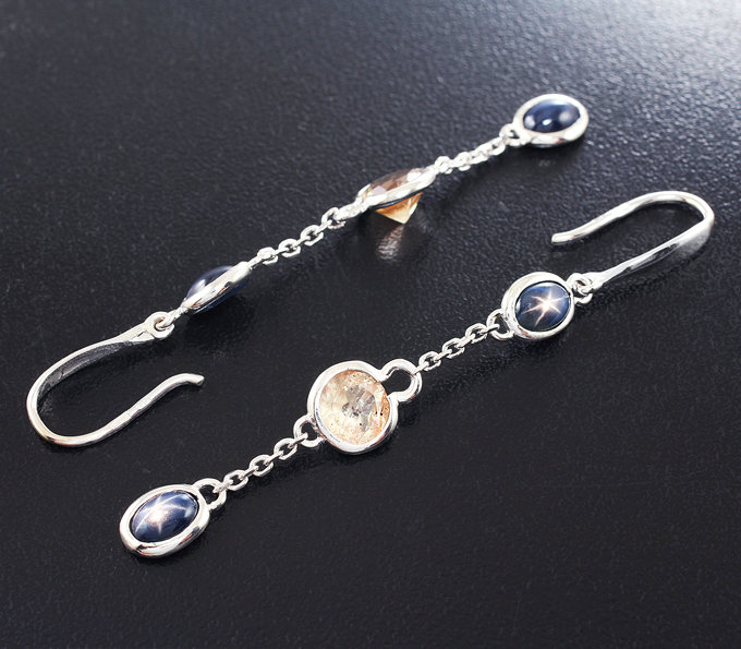 Комплект с орегонскими солнечными камнями и звездчатыми сапфирами