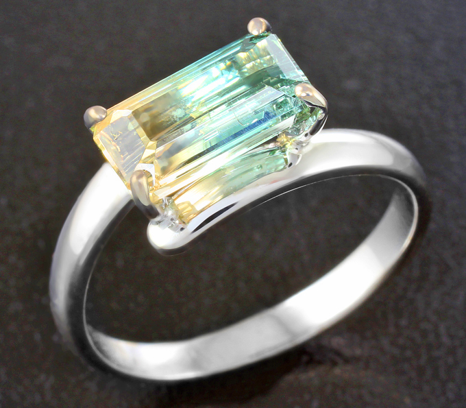 Вашему вниманию предлагается кольцо из белого золота 750 пробы с полихромным турмалином! Ширина площадки 8 мм, высота 5 мм. Вес изделия 3,5 г. Размер 17,5. Ниже приводятся ювелирные характеристики вставки.