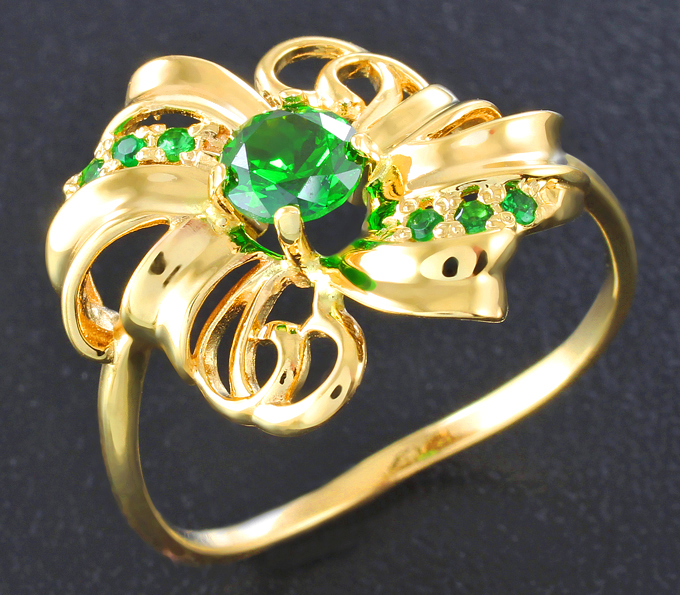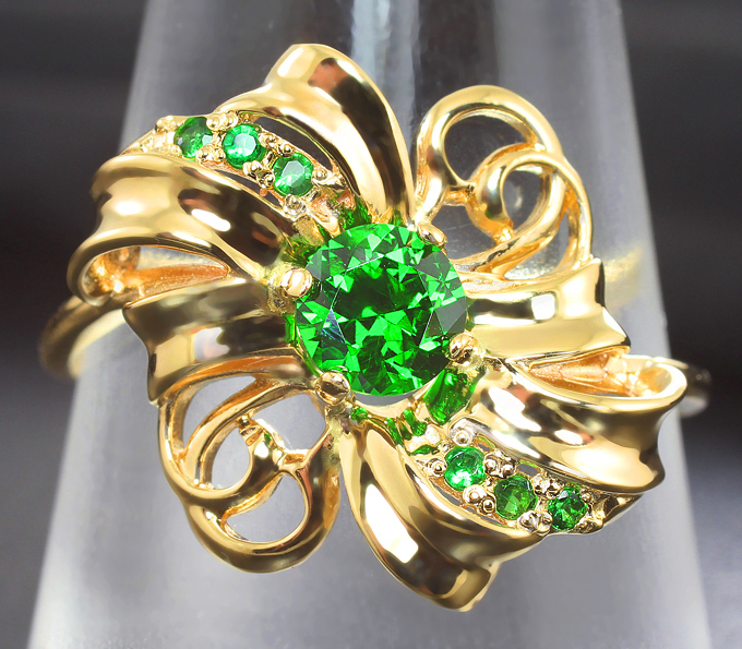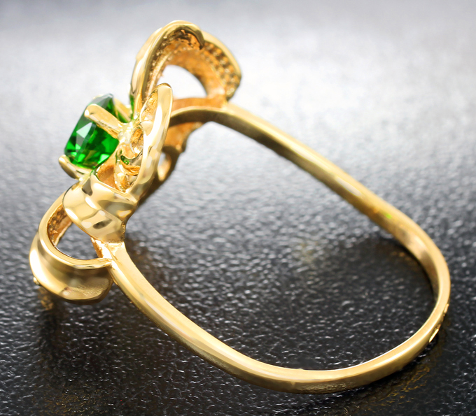 Кольцо c уральским демантоидом лучшего первого цвета и цаворитами гранатами