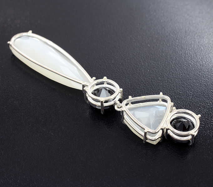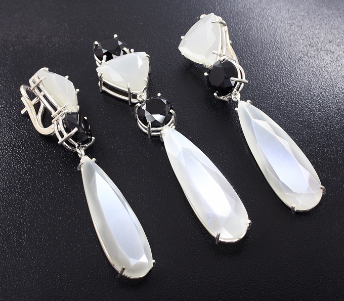 Вашему вниманию предлагается комплект (серьги + кулон) из стерлингового серебра (925 проба) с ограненными лунными камнями и шерлом! Вес комплекта 30,2 г.
