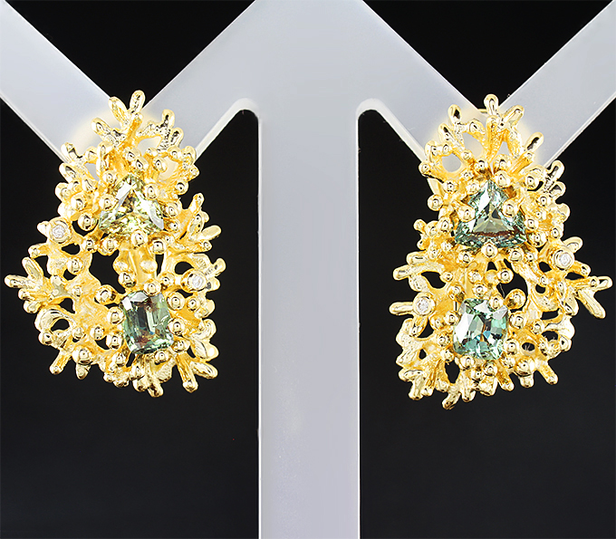 Вашему вниманию предлагаются серьги из желтого золота 585 пробы с уральскими александритами 1,98 карата и бриллиантами! Размеры вставок от 1 мм до 5 х 5 мм. Площадка серег 24 х 17 мм. Вес пары 10,4 г.