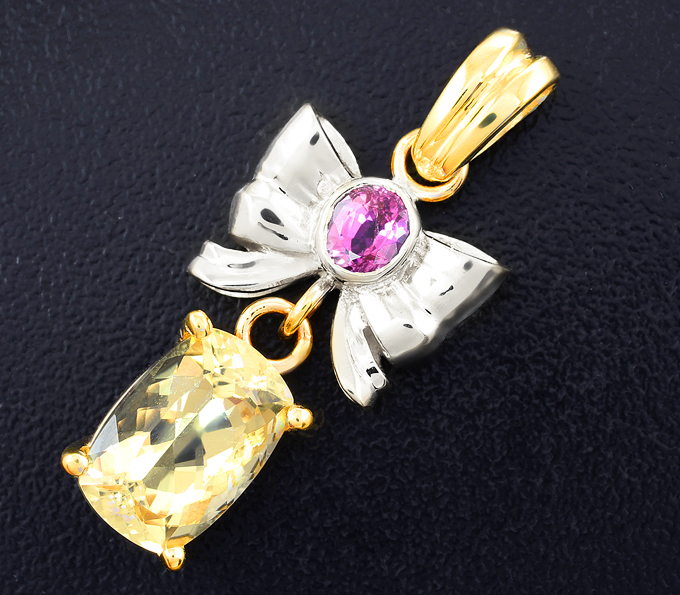 Вашему вниманию предлагается кулон из желтого и белого золота 585 пробы с гелиодором и цоизитом! Площадка 33 х 15 мм. Вес изделия 4,6 г. Ниже приводятся ювелирные характеристики вставок.