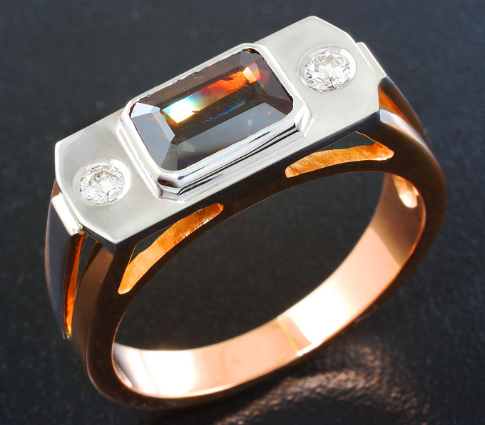 Вашему вниманию предлагается кольцо из розового и белого золота 585 пробы с гранатом и бриллиантами! При смене освещения камень меняет цвет с желтовато-зеленого на оранжевато-красный. Диаметр дополнительной инкрустации 3 мм. Площадка 20 х 9 мм, высота 6 мм. Вес изделия 10,7 г. Размер 22. Ниже приводятся ювелирные характеристики граната.