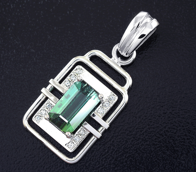 Кулон с неоново-зеленым турмалином 1,9 карата и бесцветными цирконами