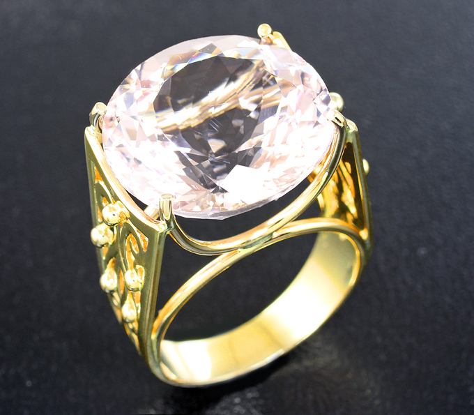 Вашему вниманию предлагается кольцо из желтого золота 585 пробы с чистейшим крупным морганитом! Площадка 18 х 17 мм, высота 13 мм. Вес изделия 10,3 г. Размер 19,75. Ниже приводятся ювелирные характеристики вставки.