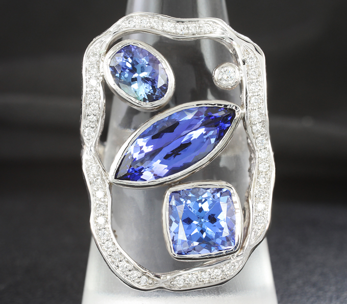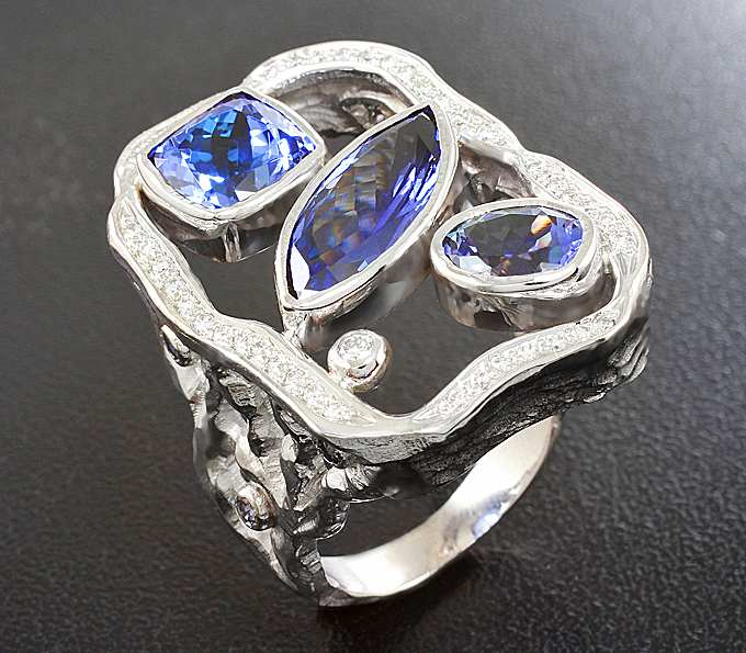 Кольцо c танзанитами 3,1 карата и бриллиантами