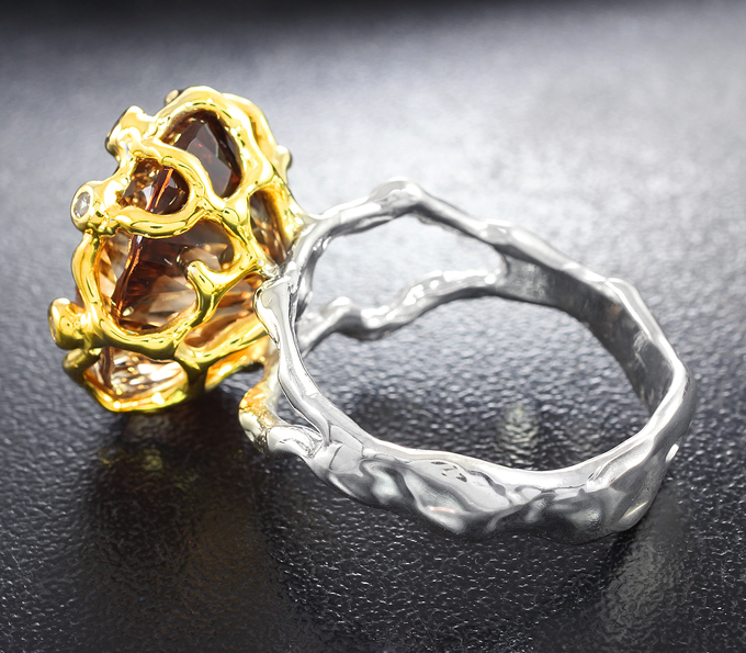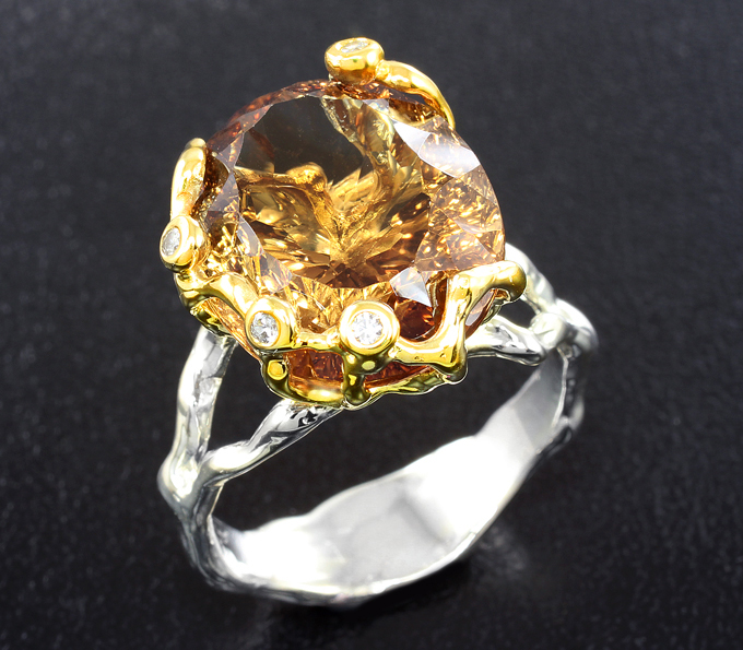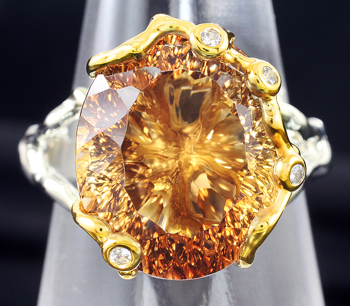 Кольцо c чистейшим империал топазом лазерной огранки 16,4 карата и бесцветными цирконами