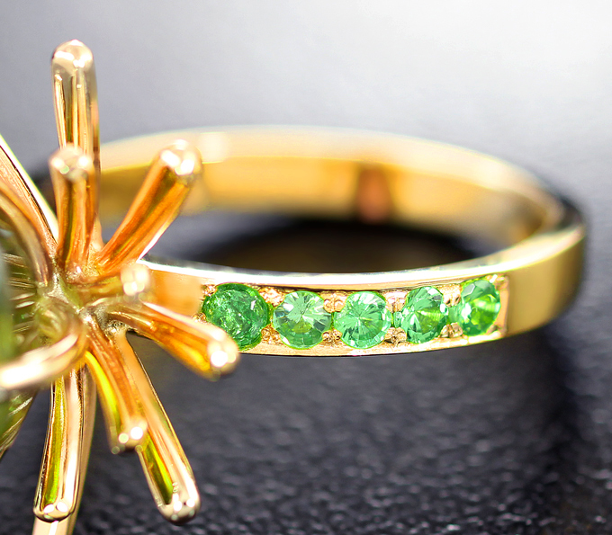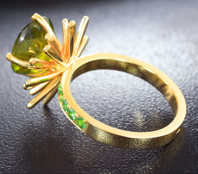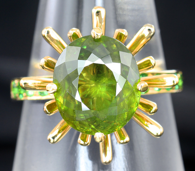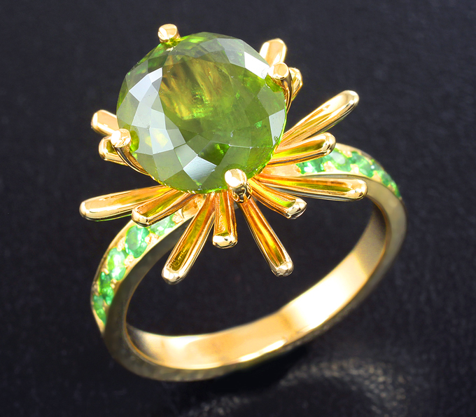 Кольцо со сфеном 4,89 карата и цаворитами гранатами