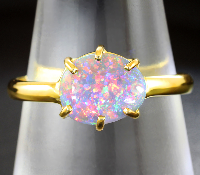 Вашему вниманию предлагается кольцо из позолоченного серебра 925 пробы c австралийским solid опалом! Опалесценция всеми цветами радуги! Площадка 10 х 10 мм, высота 5 мм. Вес изделия 2,3 г. Размер 20. Ниже приводятся ювелирные характеристики вставки.