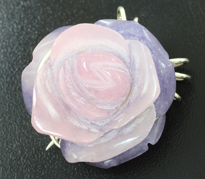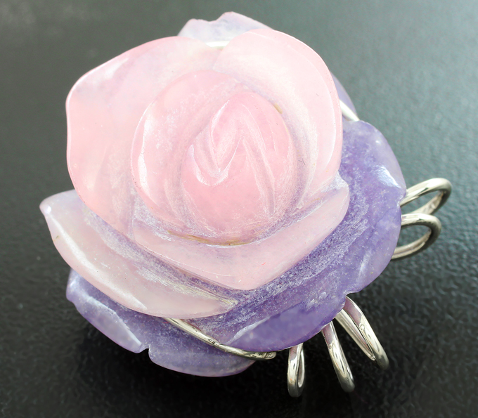 Брошь/кулон c резным полихромным кварцем