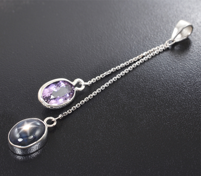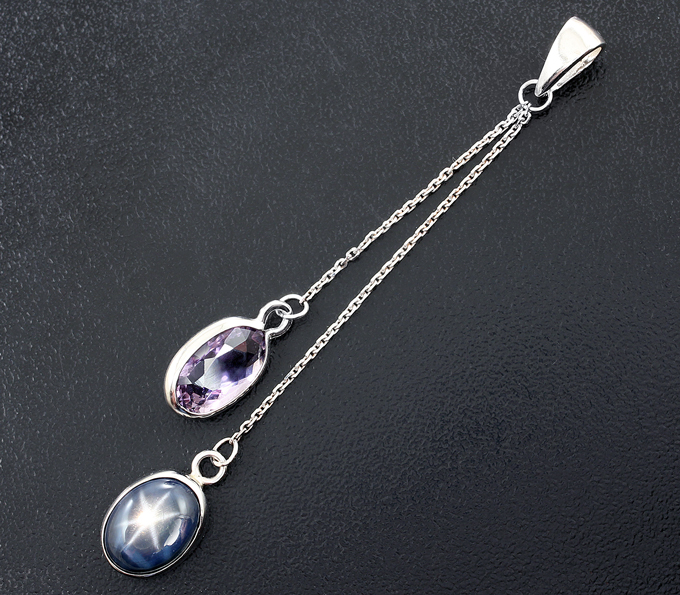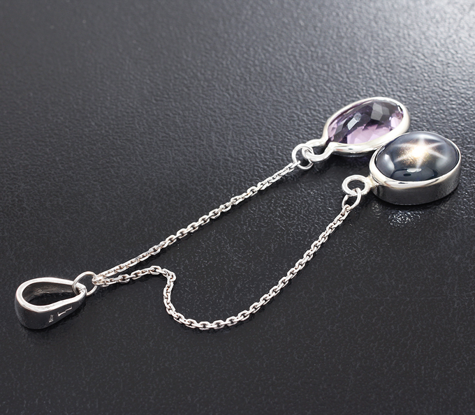Вашему вниманию предлагается кулон из белого золота 585 пробы со звездчатым сапфиром и скаполитом! Размеры кулона с петлей 73 х 9 мм. Вес изделия 3,7 г. Ниже приводятся ювелирные характеристики вставок.