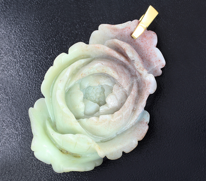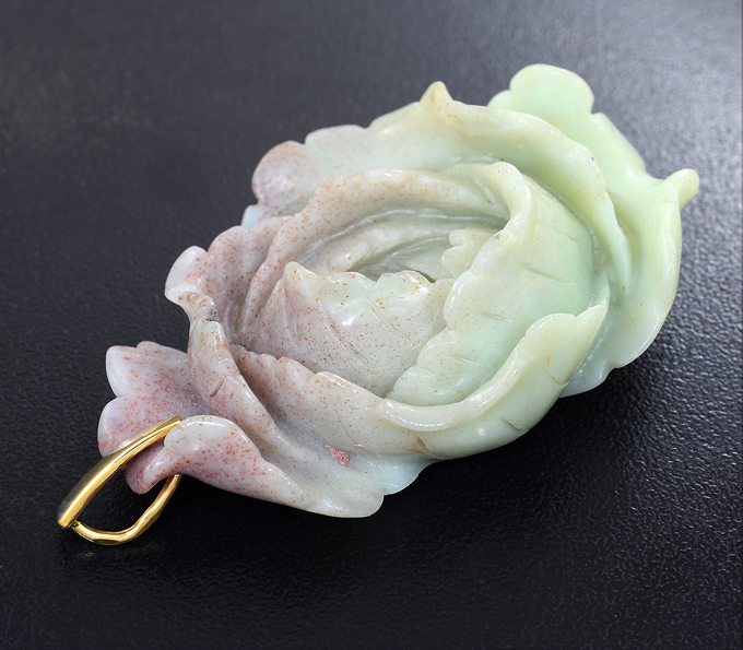 Миниатюра-подвеска «Пион» из цельного амазонита с петлей из желтого золота
