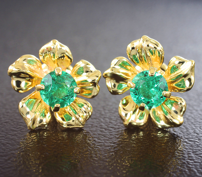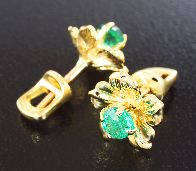 Вашему вниманию предлагаются пусеты из желтого золота 585 пробы с уральскими изумрудами 0,45 карата! Диаметр вставок 3,8 мм. Площадка пусет 10 х 10 мм. Вес пары 2,77 г.