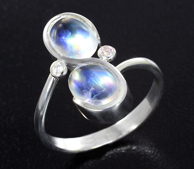 Комплект с лунным камнем и лейкосапфирами