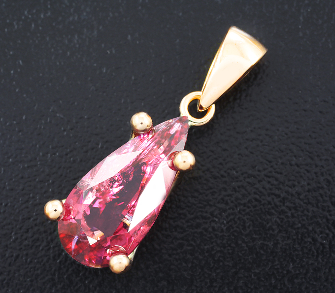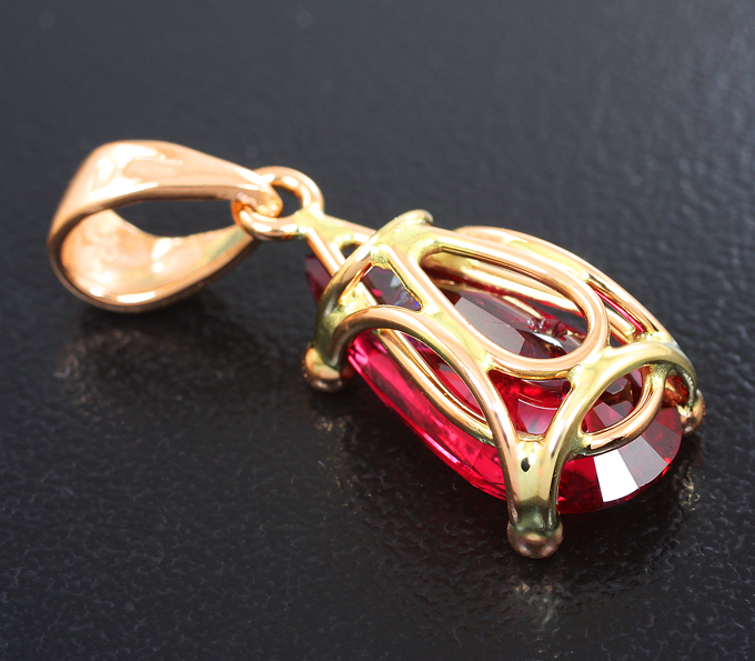 Вашему вниманию предлагается кулон из розового золота 585 пробы с крупной красной шпинелью! Размеры кулона с петлей 26 х 9 мм. Вес изделия 2,4 г. Ниже приводятся ювелирные характеристики вставки.