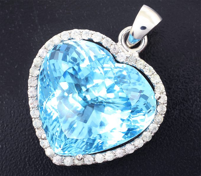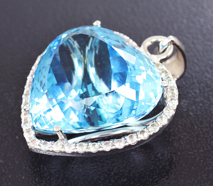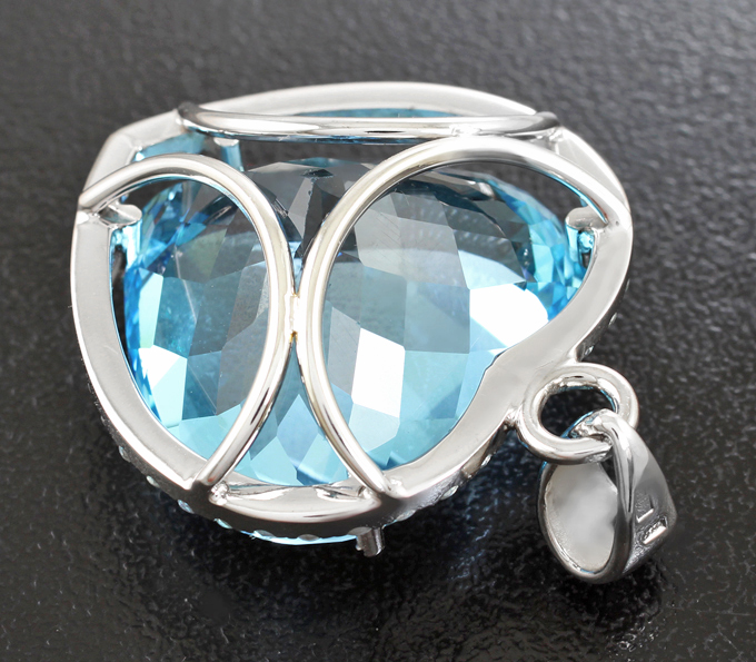 Кулон с чистейшим крупным голубым топазом 39,22 карата и лейкосапфирами