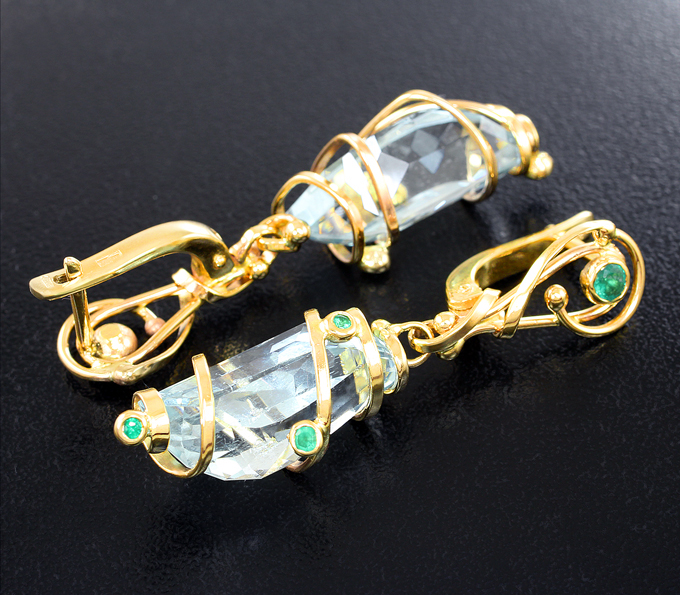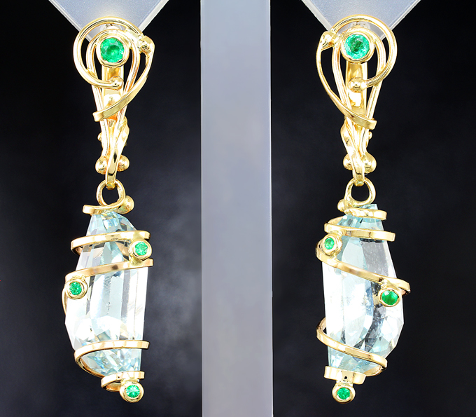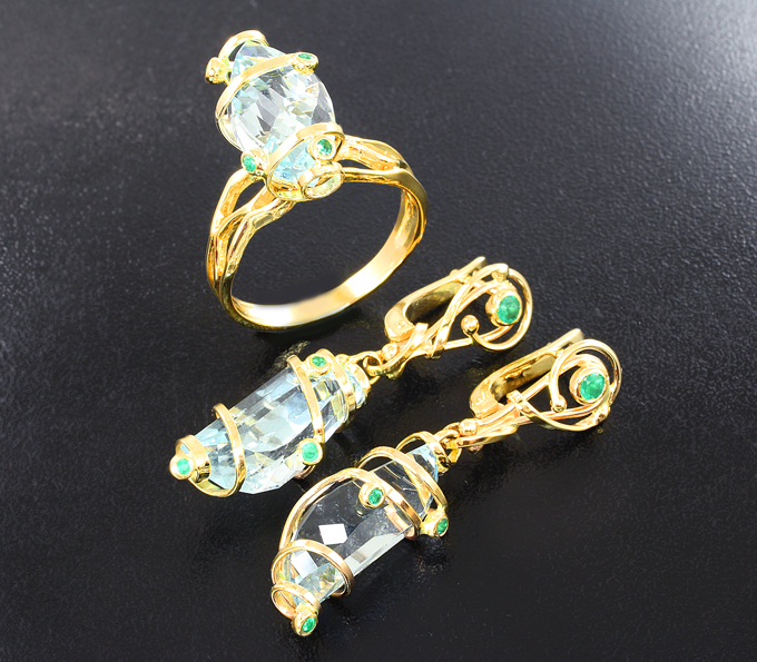 Комплект с аквамаринами 25,4 карата и изумрудами