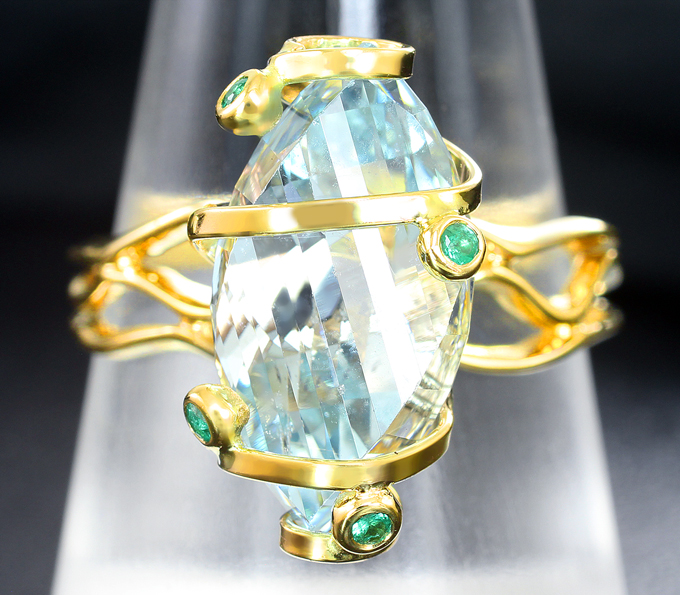 Вашему вниманию предлагается комплект (кольцо + серьги) из желтого золота 585 пробы с аквамаринами 25,4 карата и изумрудами! Размеры аквамаринов 18 х 9 мм мм и 20 х 7 мм, диаметр дополнительной инкрустации от 1,5 мм до 3 мм. Вес комплекта 15 г.