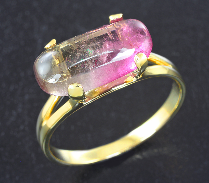 Вашему вниманию предлагается кольцо из желтого золота 585 пробы с полихромным турмалином! Площадка 15 х 8 мм, высота 8 мм. Вес изделия 3,4 г. Размер 19. Ниже приводятся ювелирные характеристики вставки.